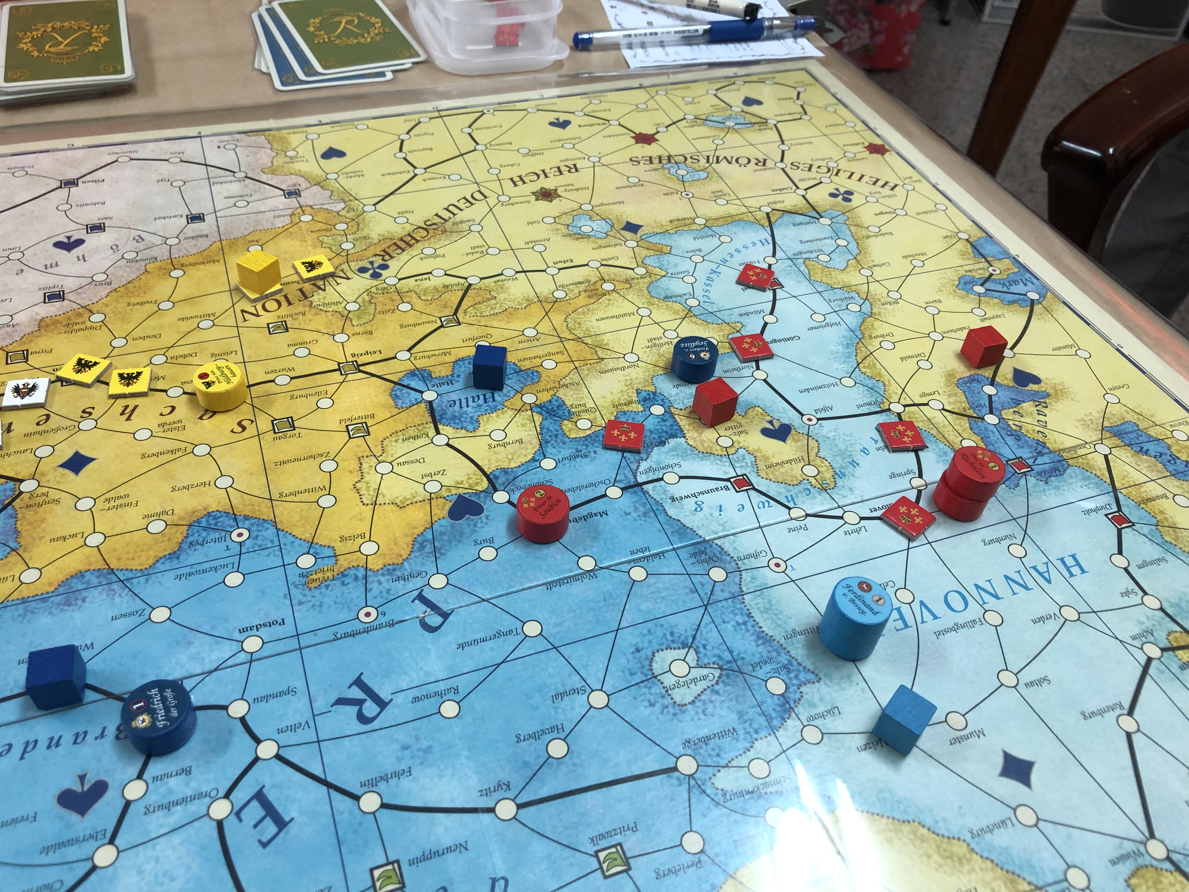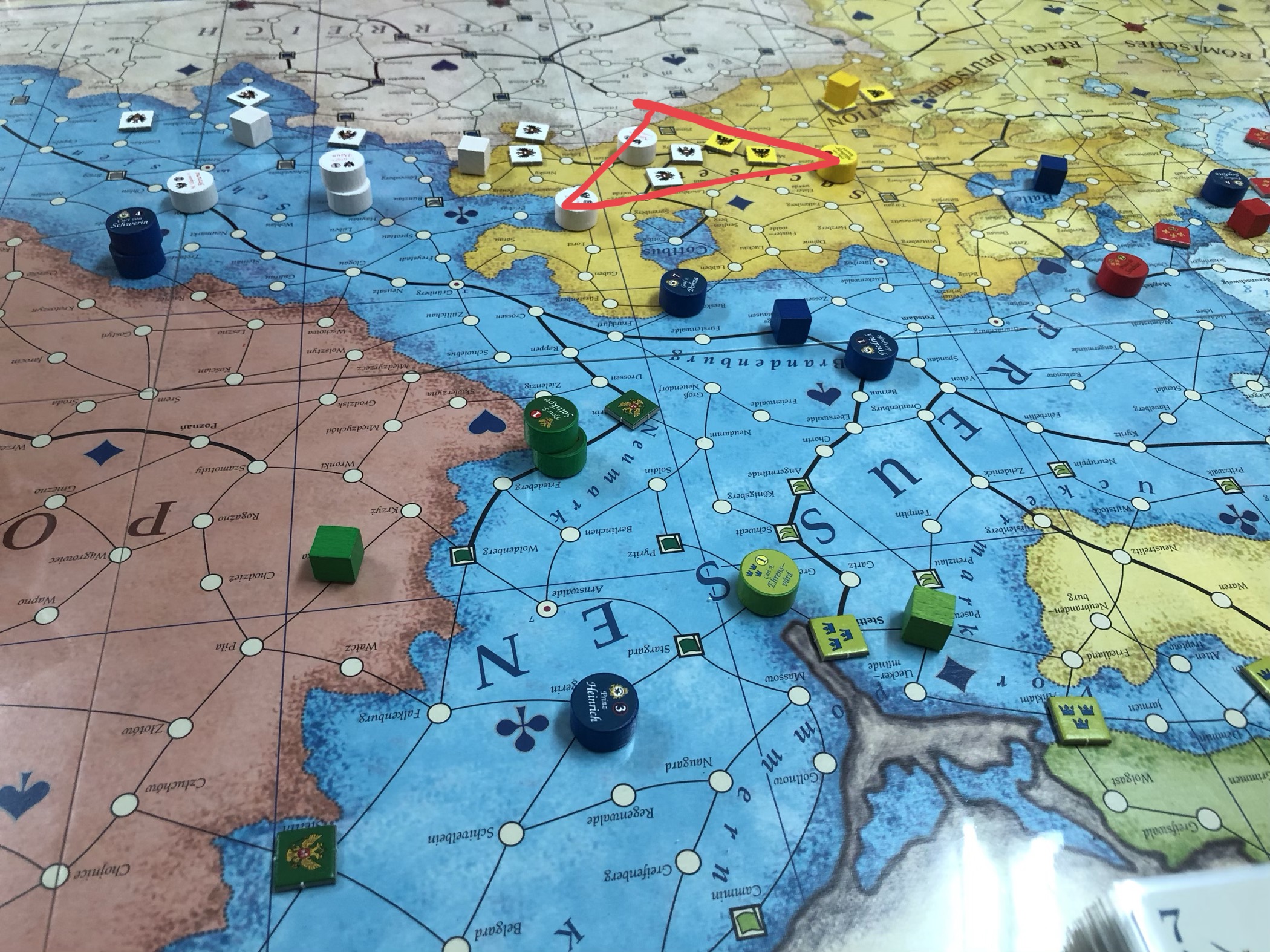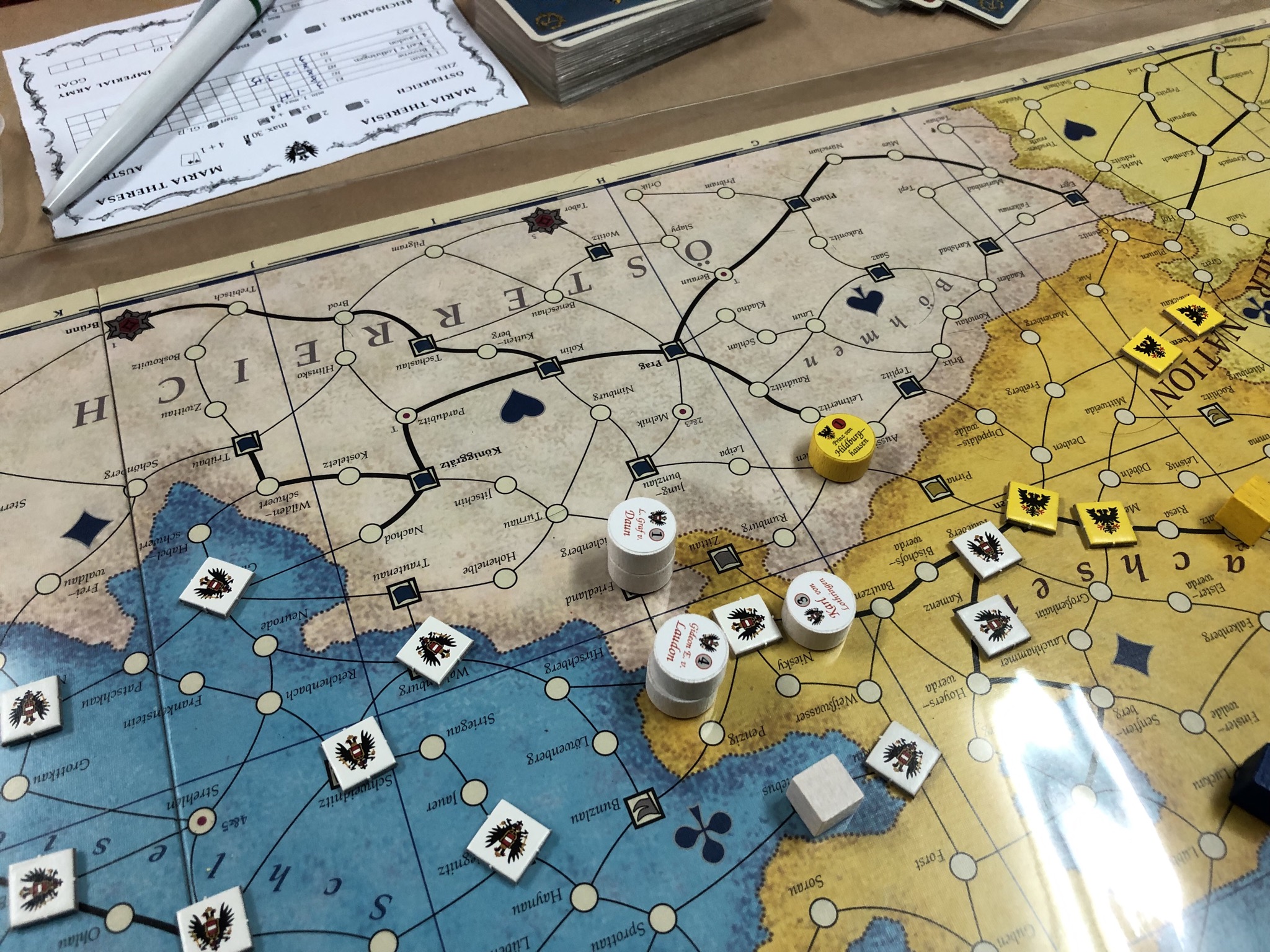 隨著各地衝突加劇,戰事進入白熱化,俄、奧、法軍輪番與普軍發生零星衝突,普軍防禦雖已如薄冰一般脆弱,但在豐厚的國力支援下,戰鬥雙方勝率呈現五五波、甚至普軍稍居上風的局面,一度退奧法、逼迫俄軍補給隊,但在發生遠東國家印度減少金援資助的事件後,旋即打破這股平衡局面,普軍的贏面急轉直下,奧俄兩國陸續敲破這層薄冰般防禦,奧軍在西里西亞打破對峙狀態,殲滅普軍,即將收復西里西亞,只要再擊退普魯士位於薩克森地區僅存的2支守備軍,即可達成其軍事目標,而俄軍則在轉瞬間擊潰東普魯士守備隊及僅存於普魯士東邊境的單一部隊,於普魯士東北國土如無人之境,俄軍同樣即將達成沙皇在這場戰爭中訂下的軍事目標,離獲得勝利只是咫尺之遙,但在此時,俄軍收到來自莫斯科的消息:沙皇駕崩,為避免周邊國家蠢動,儘速撤軍防衛國土!