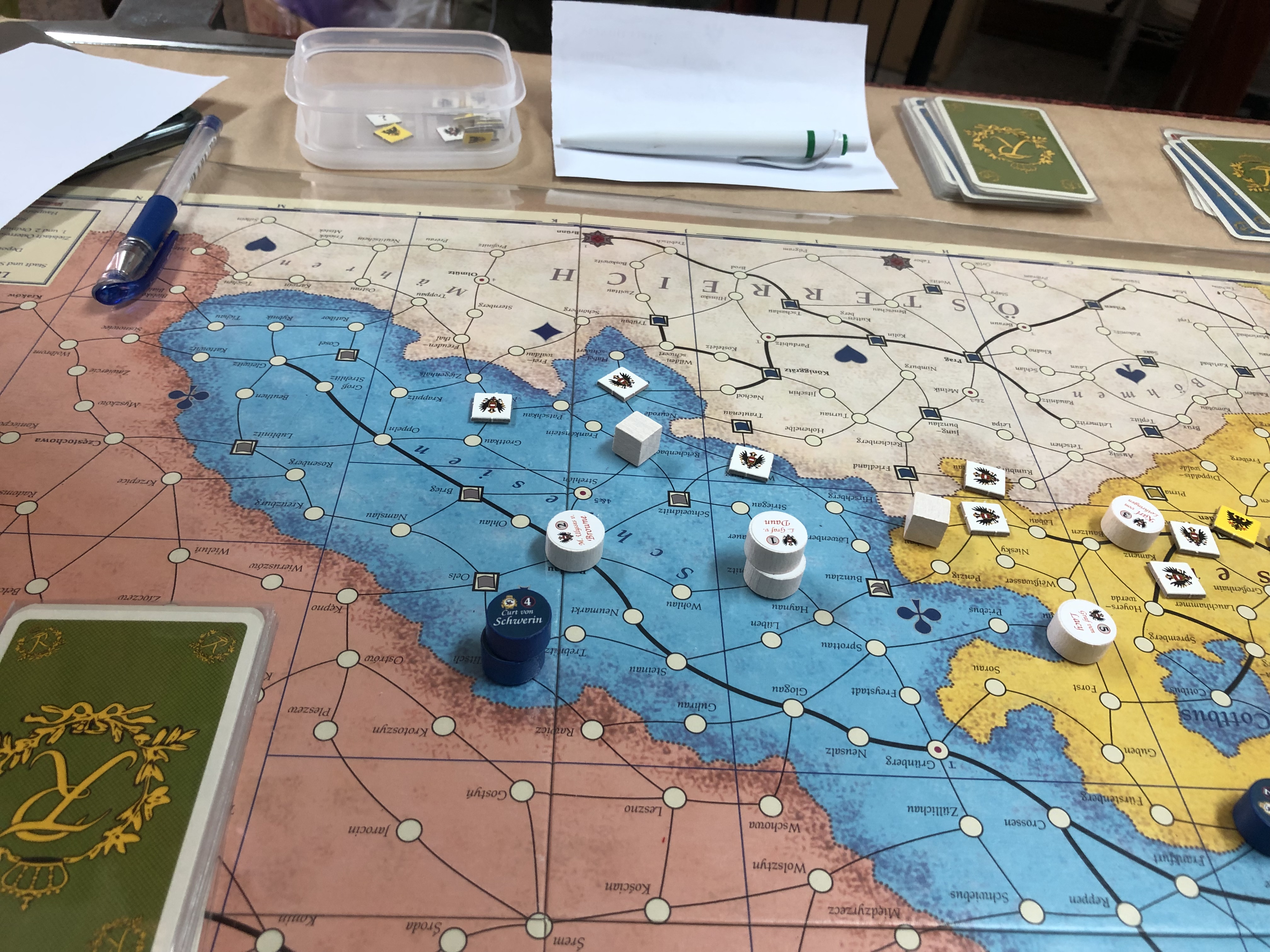 另一方面,奧地利派遣2支部隊前往收復故土西里西亞,遭遇普魯士部隊鎮守該處,期間奧軍抓準普軍行軍失誤,曾一度在戰鬥中佔上風,但因錯估普軍戰力,使得普軍得以脱逃,重整態勢,據於地利,自此雙方呈對峙局面。而奧地利另有2支部隊向西行,與帝國軍會合於薩克森地區,並呈現三角陣式,守備緊密,攻一側,首尾將至,普軍旋即打消強攻帝國軍的計畫,只得靜待有無可乘之機。