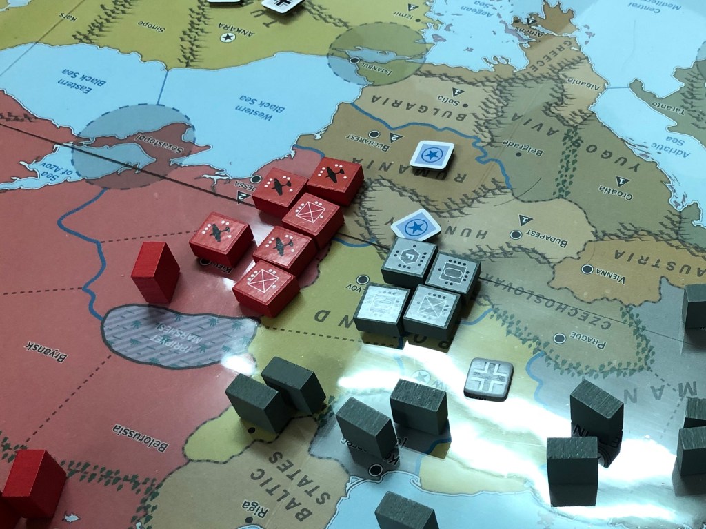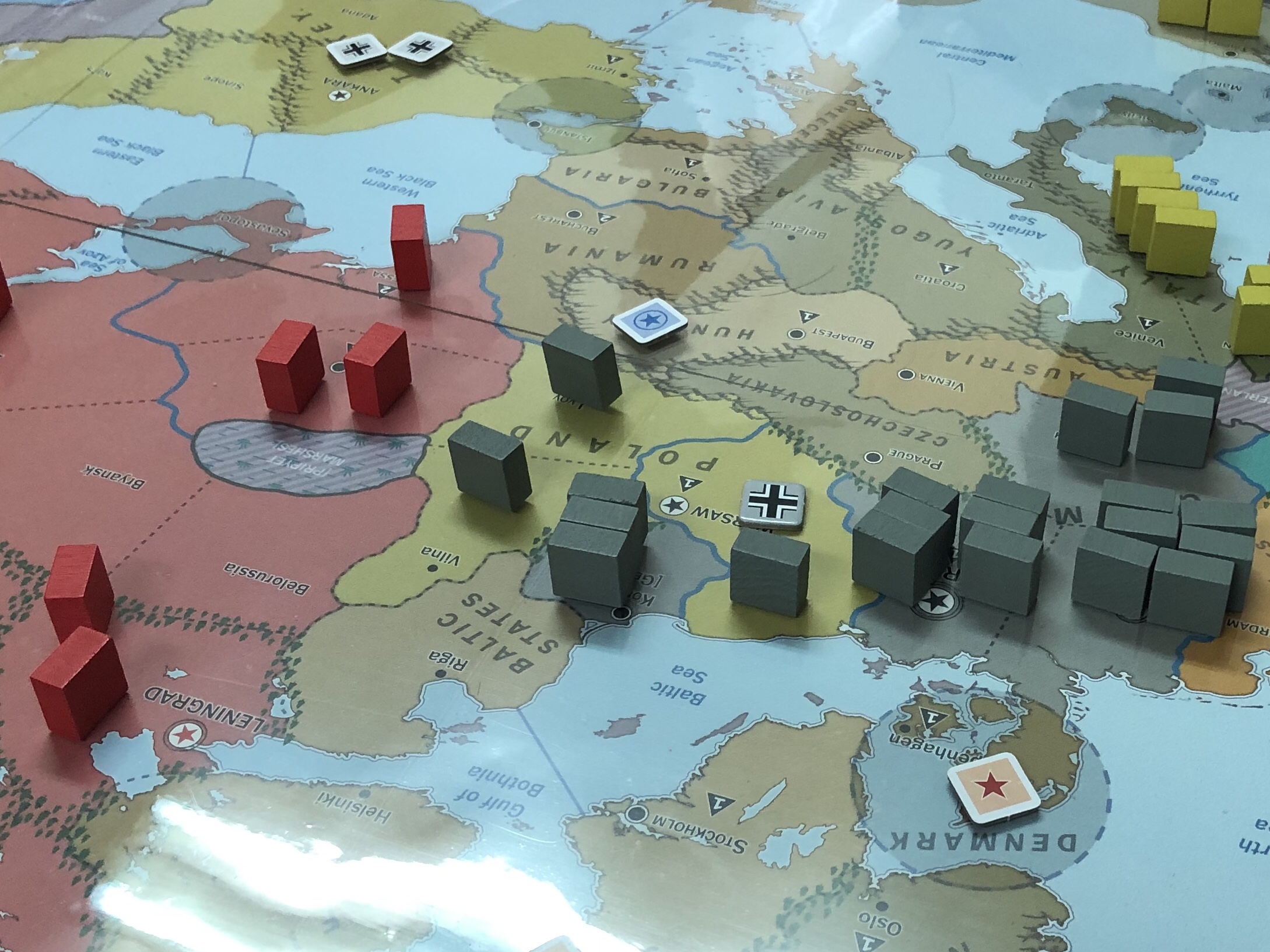 1936年,以德國為首的軸心陣營為爭取國際間的合作與支持,開始對歐洲各國展開外交行動,尤其將重點擺在土耳其、波蘭及西班牙等資源大國,期望與渠等建立密切的經貿合作,提升國內資源。擔心軸心陣營在歐洲勢力獨大的西方同盟及蘇聯,見軸心不斷與土耳其、波蘭及西班牙擴大經貿往來、深化政治交流,於是協議聯合干擾軸心,分別將民主及共產福音傳播至該等國家,雖阻止了軸心與土耳其、西班牙之間的建交,但終究不敵軸心大量投入人力物力於外交戰,波蘭不僅與軸心陣營建交,更同意軸心陣營之首的德國將正規軍駐紮於首都華沙等重鎮,此結果導致蘇聯薄弱的前線立即曝露在德國鐵衛之前,除此之外,德國更加速發展軍事科技,使空軍的轟炸能更精準的擊中目標。