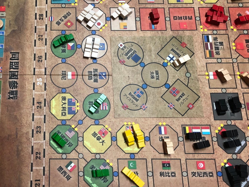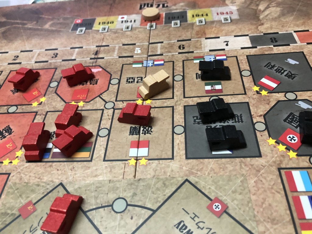 1942年,位於亞洲的蘇聯因默默耕耘近3年而顯得軍容壯盛,見盟友英國出兵歐洲及北非,也燃起了對外擴張的野心,於是以極地為目標,出兵攻克芬蘭,而由於極圈國家戰力薄弱,且無同盟國軍隊協防,蘇聯海軍如入無人之境,迅速佔領北極,掌握極圈航線,除此之外,東部戰線則向外推進至波蘭,但日本則趁蘇聯分兵至極圈的同時,趁勢派兵攻佔蘇聯領地蒙古,並伺機取得兵力應接不暇的西伯利亞。