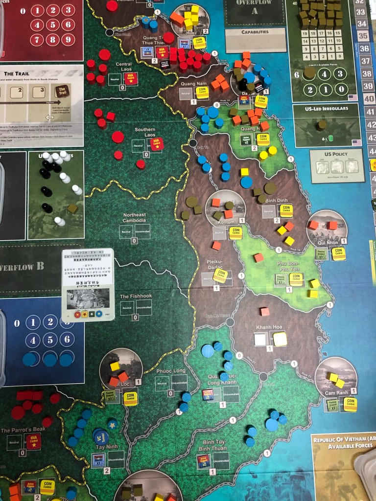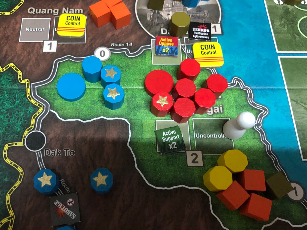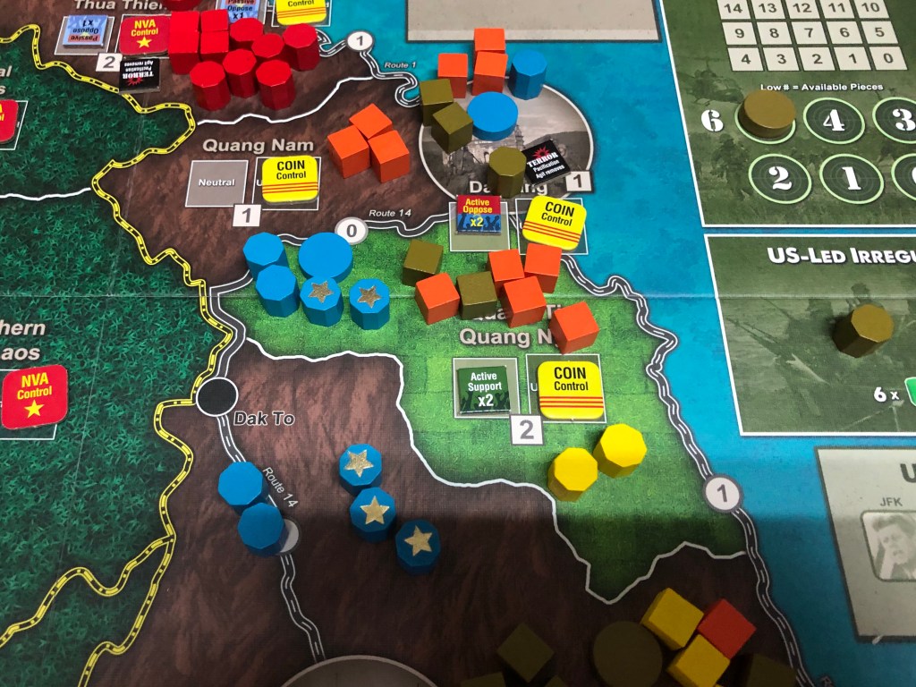 隨著北方的戰事越來越趨於白熱化,美國、南越聯軍與北越幾次戰鬥下來,北越以優勢動員力展開人海戰術,南越則四處掃蕩潛伏的北越游擊隊,經過辨識後,由美軍實施空襲,雙方各擅勝場,打了個五五開,彼此均無法有效推進,於是北越領導人胡志明以雙方持有的資源量來考慮,認為不應與南越打消耗戰,且美軍在南越的民心支持度高,應該會放膽進行空襲(註:空襲將造成民心支持度下降),但又苦於無法順利將觸角深入聯軍控制區域,於是趁著越共游擊隊攪和的機會,在廣信-廣義省(Quang tin-Quang Ngai)以滲透方式將越共游擊隊吸收為己方勢力,且建立北越軍的前進基地。
