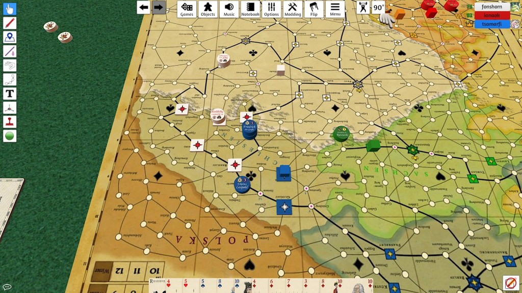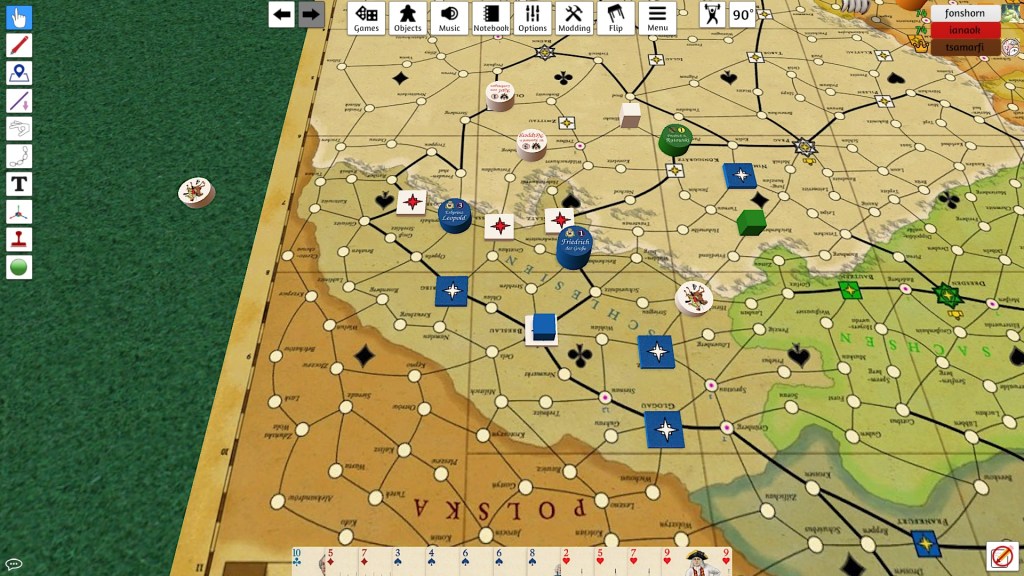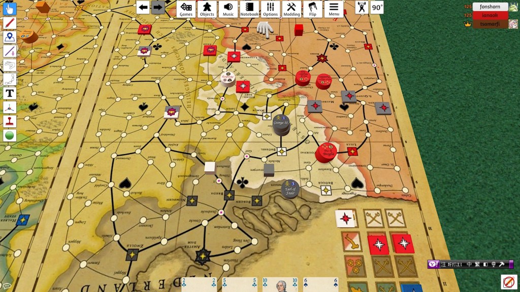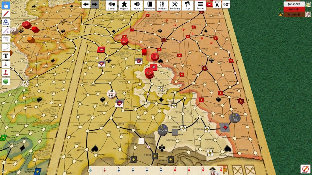 1742年,春冰才剛逐漸消融,護皇軍旋突進法國北部領土,並攻克不少的城池,使得原本以優勢兵力與奧軍周旋的法軍不得不分兵前往支援,意欲收回失土,護皇軍此舉倒也同時緩解了奧軍獨自面對法國龐大軍容的壓力。而法蘭德斯地區的奧地利軍在軍事上雖然無法協助護皇軍對法軍做出多少重大打擊,但瑪麗亞女皇尚且能夠從政治外交手段牽制法軍。1742年,瑪麗亞女皇說動義大利皇室出兵攻打法國南端領土,使得法皇路易十五不得不從前線抽調部隊派遣1支遠征軍前往抵抗,奧地利此一策略奏效,大大打擊了法軍士氣,使得護皇軍與法軍之間的衝突成為拉鋸之勢。