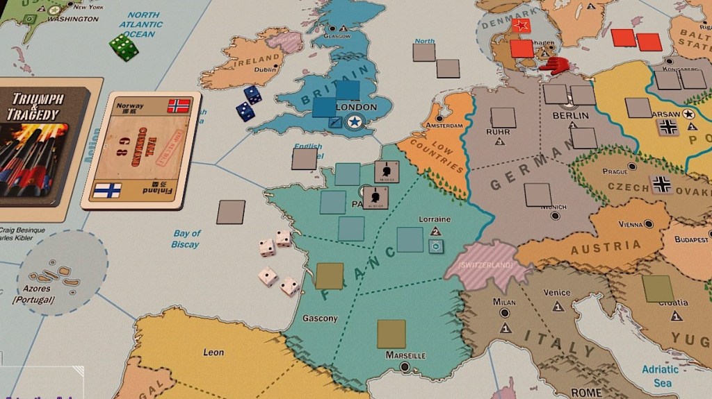 在西班牙具有駐軍的蘇聯接下來的目標即為侵略法國,然而德國因為戰局在短短一季之中變化太快,軍隊回防不及,且也無力回防,法國地區防線成為真空地帶,駐西班牙蘇軍僅需1季的時間僅可進入巴黎,宣告從侵略者軸心國的手中收復巴黎,蘇聯在歐洲的聲望將達到最大,再無任何勢力可制衡,成為歐陸主宰,德國元首不得已,只能向英國首相求援,提出歸還首都巴黎,由法軍防守巴黎,德軍防守洛林,共同抵禦蘇聯的提議,這樣的提議,讓元首在國內飽受民眾的批評,認為喪權辱國,而對於如此提議,英國首相自然是欣然接受。於是罕見的情況發生了,在大戰初期互相敵視的英、德雙方,竟在1940年春季成了共同防衛法國的盟友。