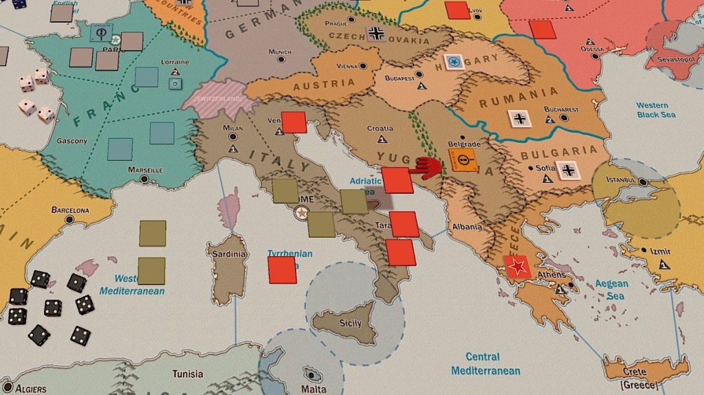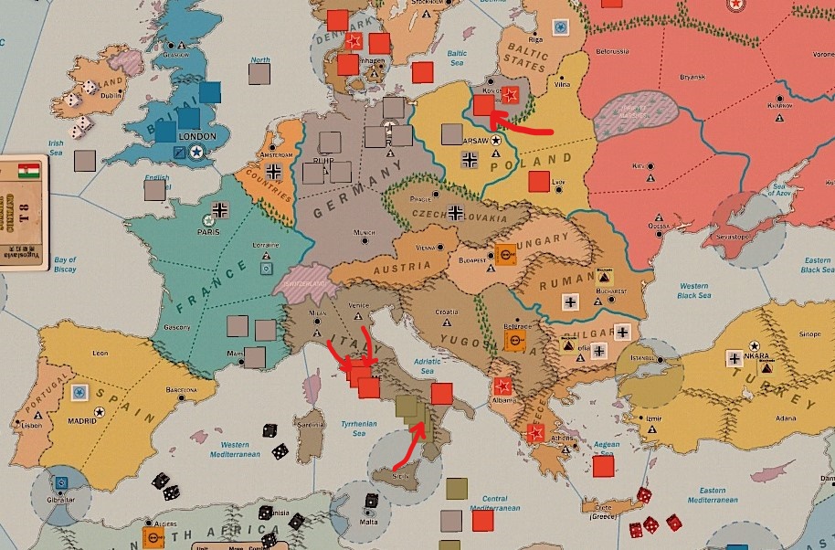 英德在外交上雖然打得火熱,但對於共同防止共產入侵歐洲仍具有共識,因此德國元首以攻下義大利確保地中海航線自由通行為由,說服英國首相指揮駐法英軍於1942年春季朝著義大利領土進軍,並由德艦於羅馬近海實施炮擊,破壞部分蘇軍的防守,位於義大利的蘇軍因距離本土支援遙遠,且蘇聯領導人仍不想放棄進攻柏林的機會,雖有分兵從奧地利方面馳援義大利,但終究不敵,於是英軍在1943年春季攻下羅馬,將蘇軍逐出地中海。