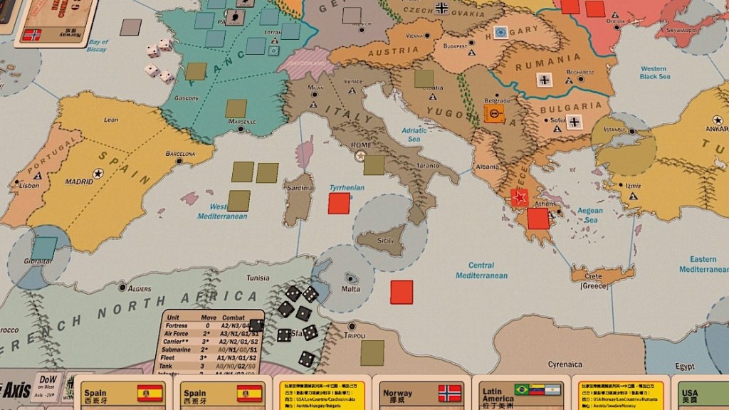 1938年秋季,為了阻斷蘇聯的後援運輸路線,義大利海軍主動突入中部地中海,義軍與蘇軍爆發海戰,義大利海軍雖擊沉蘇聯水面艦,但蘇聯潛艦發揮其擅於躲藏的本領,將戰局拉向持久戰,讓義大利海軍遲遲無法將海域淨空。此外,羅馬也面臨蘇聯陸軍包圍的危險,因此義大利總理逼不得已而向德國元首請求陸上及海上支援,德國元首因此派遣部分駐法陸軍前往義大利支援,並將原用於封鎖法國外海的部分艦隊派往中部地中海,與義大利海軍會合,組成優勢戰力掃蕩蘇聯潛艦。