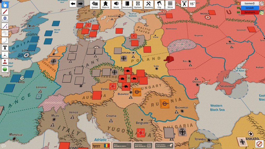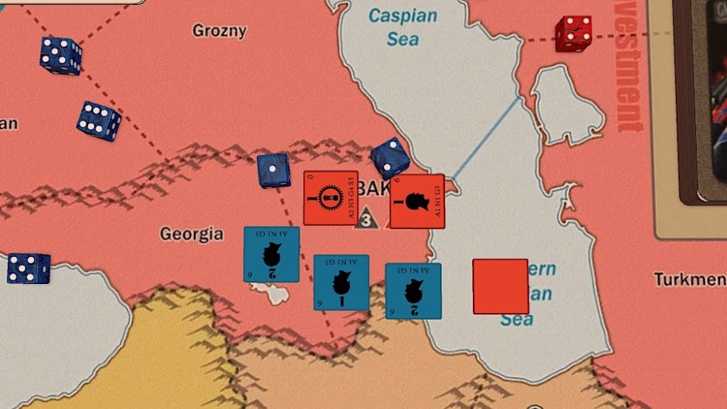 在英軍攻下義大利後,蘇聯圖謀歐洲的氣燄稍減,但由於蘇軍各集團軍仍逐漸逼近德國本土,英國元首擔心德國軍勢會因此潰敗,於是指派駐印英軍攻下阿富汗,後續則從阿富汗進入蘇聯南部,劍指巴庫,期望藉此影響蘇聯的軍事重心分布,緩解德國方面的壓力,但蘇聯領導人旋即利用蘇聯廣袤的領土做出有效率的防守,使得英國元首不得其門而入,最後選擇轉進波斯以拓展進攻路線,不料波斯軍強悍,連續2季阻擋英軍的侵略,使得英國元首不想再擴大傷亡,下令部隊撤回阿富汗,以波斯為界,與蘇聯相互對峙。